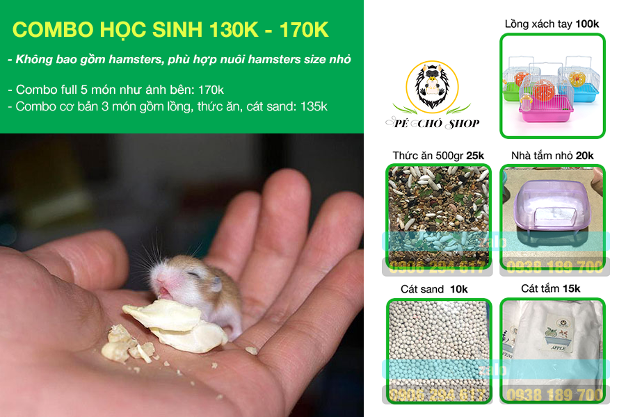 Kích thước: Các bạn có thể nuôi được 1 cặp hamster dóng nhỏ như robo ,campel ,winter nhé.