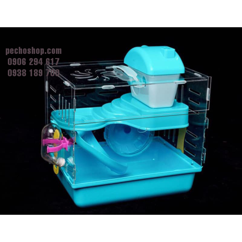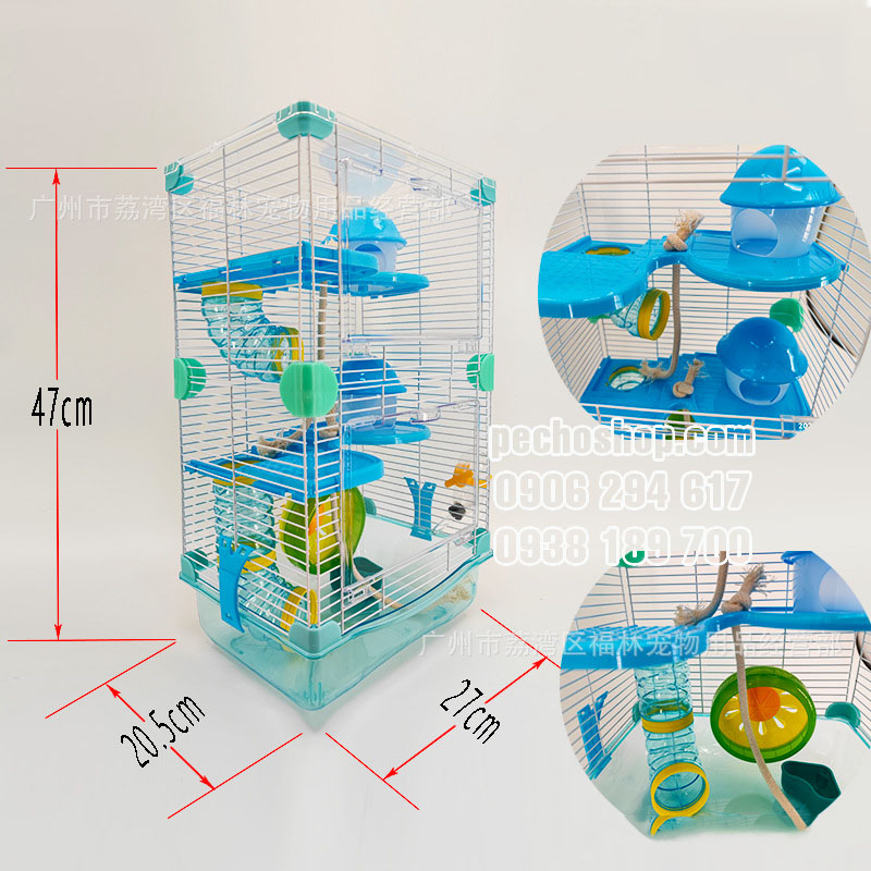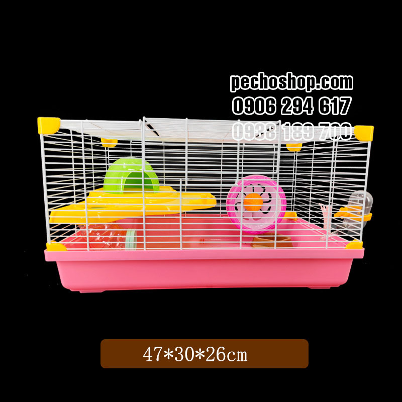 Kích thước: dài 30 x rộng 23 x cao 28cm. Lồng như ảnh, có kích thước to phù hợp cho hamsters, đặt biệt là hamsters bear với cầu thang to, và các loại thú nhỏ khác...