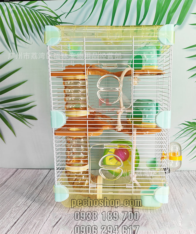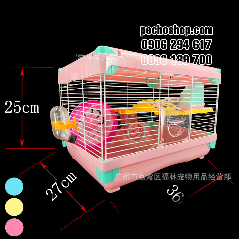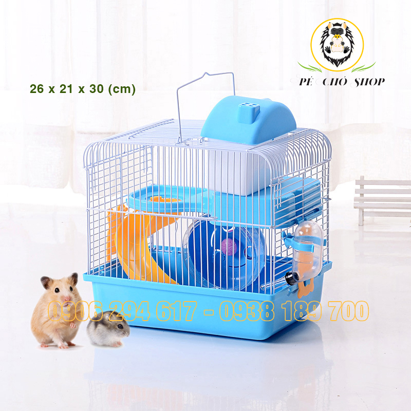 Kích thước: dài 23 x rộng 18 x cao 30cm, là lồng phổ biến và có kích thước vừa phải cho các bé hamsters leo trèo, sinh hoạt.