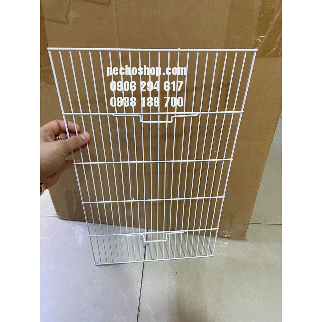 Kích thước: dài 50 x rộng 36 x cao 43cm. Lồng nan sắt chắc chắn, có khay nhựa bên dưới, phù hợp nuôi chó mèo size nhỏ và thỏ bọ...